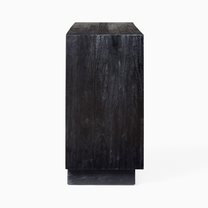 - 4 doors open to 2 cabinets with 1 adjustable shelf in each.