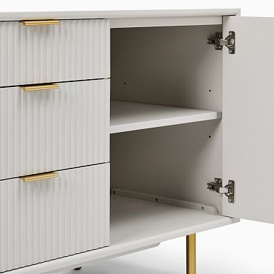 - Drawer & cabinet fronts: Fluted engineered wood.