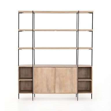 - Solid mango wood cabinet, cubbies and shelves in a Natural finish.